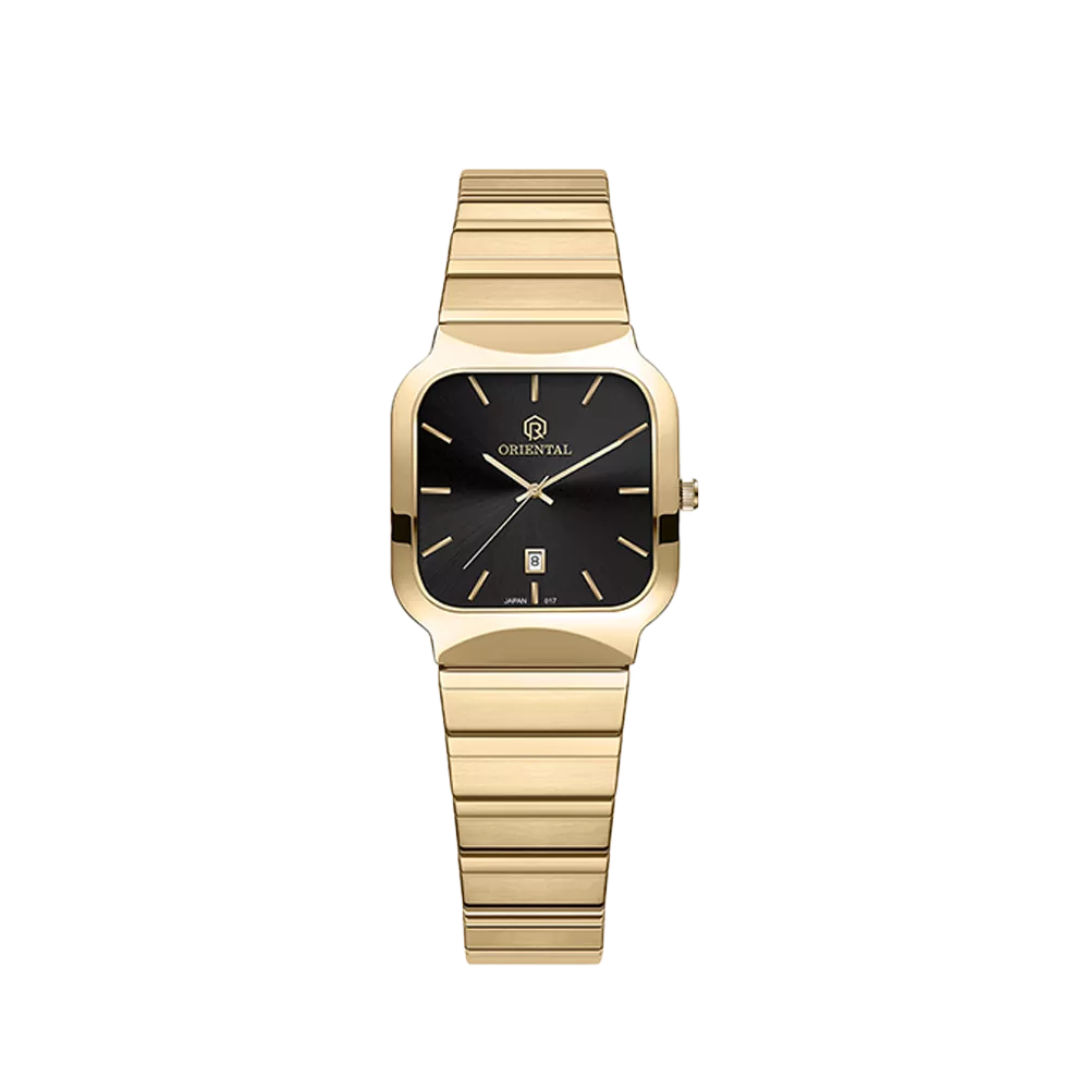 Oriental Watch For Women code O.SH017L-0002 ,a beautiful wrist watch with 017 Reference, is a Classic watch which has a Metallic Strap, gives you an unique style. This watch has a Golden case, Golden strap and a Black dial which has created a beautiful color combination.