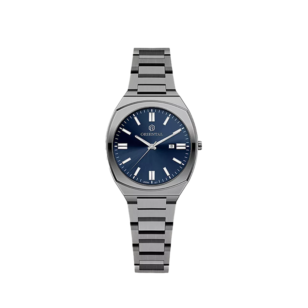 Oriental Watch For Women code O.SH021L-0020 ,a beautiful wrist watch with 021 Reference, is a Classic watch which has a Metallic Strap, gives you an unique style. This watch has a Smoke case, Smoke strap and a Dark Blue dial which has created a beautiful color combination.