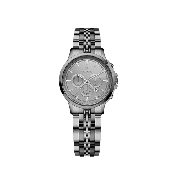 Oriental Watch For Women code O.SH022L-0025 ,a beautiful wrist watch with 022 Reference, is a Chronograph watch which has a Metallic Strap, gives you an unique style. This watch has a Steel case, Steel strap and a Gray dial which has created a beautiful color combination.