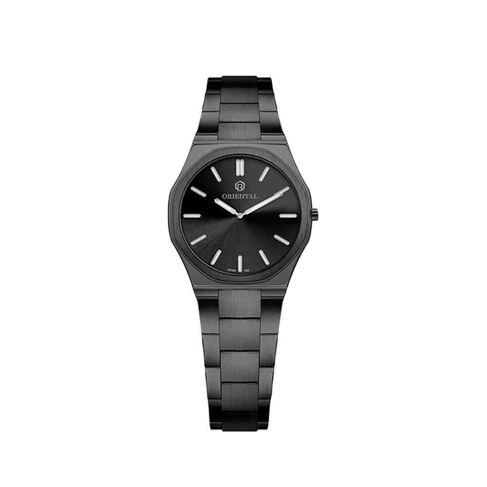 Oriental Watch For Women code O.SH025L-0096 ,a beautiful wrist watch with 025 Reference, is a Classic watch which has a Metallic Strap, gives you an unique style. This watch has a Black case, Black strap and a Black dial which has created a beautiful color combination.