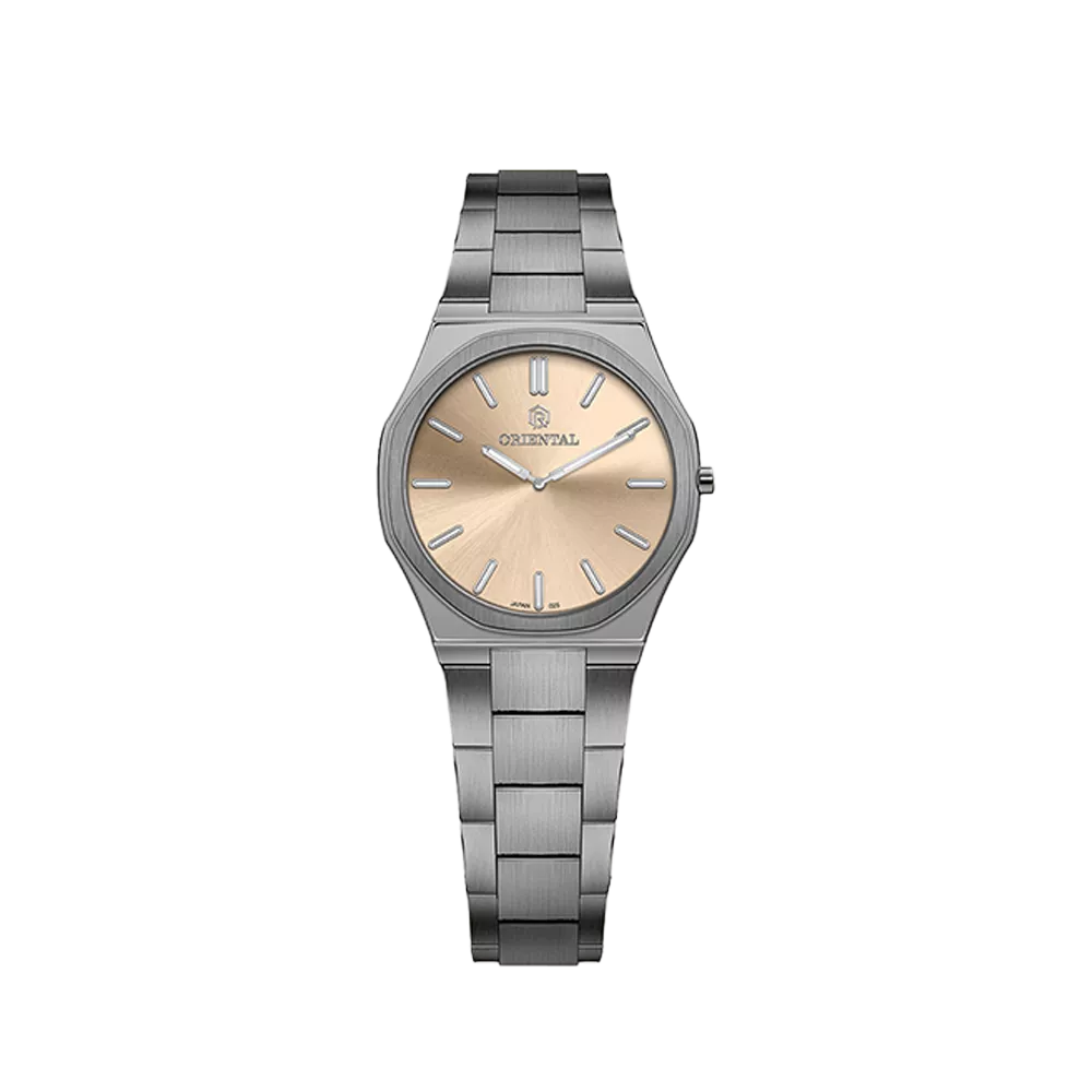 Oriental Watch For Women code O.SH025L-0412 ,a beautiful wrist watch with 025 Reference, is a Classic watch which has a Metallic Strap, gives you an unique style. This watch has a Smoke case, Smoke strap and a Champagne dial which has created a beautiful color combination.