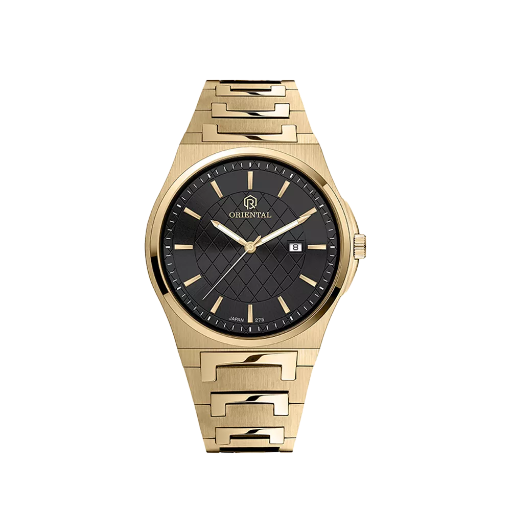 Oriental Watch For Men code O.SH275G-0002 ,a beautiful wrist watch with 275 Reference, is a Classic watch which has a Metallic Strap, gives you an unique style. This watch has a Golden case, Golden strap and a Black dial which has created a beautiful color combination.