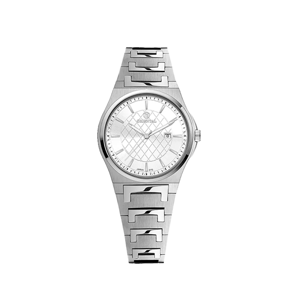 Oriental Watch For Women code O.SH275L-0004 ,a beautiful wrist watch with 275 Reference, is a Classic watch which has a Metallic Strap, gives you an unique style. This watch has a Steel case, Steel strap and a Silver dial which has created a beautiful color combination.