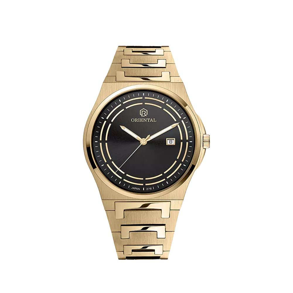 Oriental Watch For Men code O.SH276G-0002 ,a beautiful wrist watch with 276 Reference, is a Classic watch which has a Metallic Strap, gives you an unique style. This watch has a Golden case, Golden strap and a Black dial which has created a beautiful color combination.