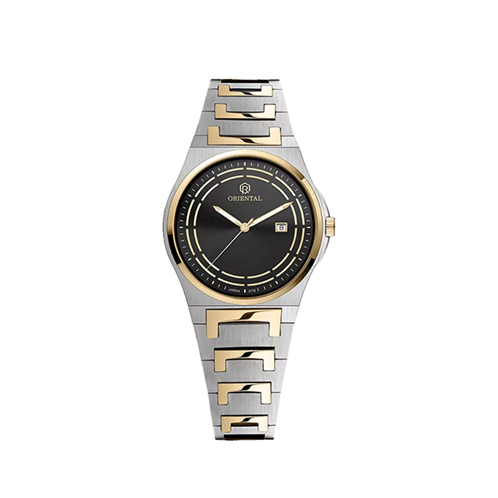 Oriental Watch For Women code O.SH276L-0023 ,a beautiful wrist watch with 276 Reference, is a Classic watch which has a Metallic Strap, gives you an unique style. This watch has a Golden Steel case, Golden Steel strap and a Black dial which has created a beautiful color combination.