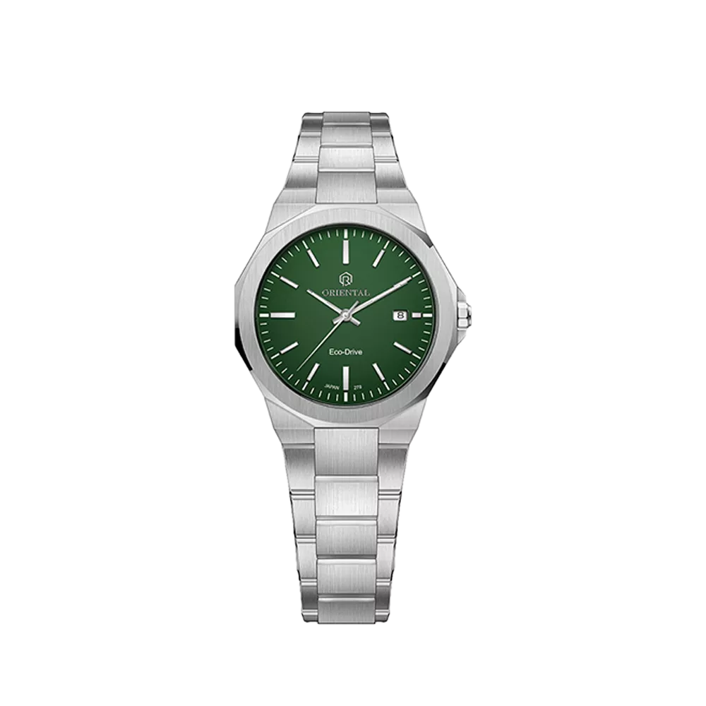 Oriental Watch For Women code O.SH278L-0009 ,a beautiful wrist watch with 278 Reference, is a Classic – Ecodrive watch which has a Metallic Strap, gives you an unique style. This watch has a Steel case, Steel strap and a Green dial which has created a beautiful color combination.