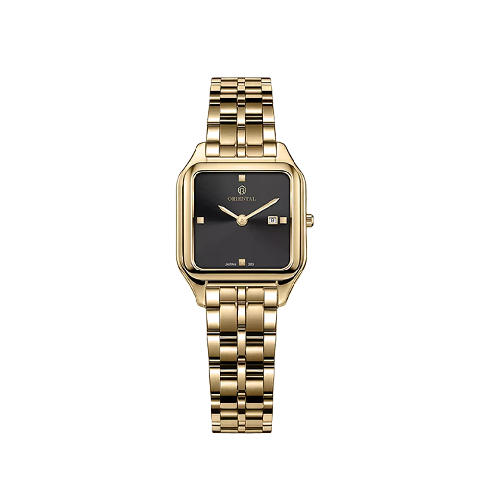 Oriental Watch For Women code O.SH283L-0002 ,a beautiful wrist watch with 283 Reference, is a Classic watch which has a Metallic Strap, gives you an unique style. This watch has a Golden case, Golden strap and a Black dial which has created a beautiful color combination.