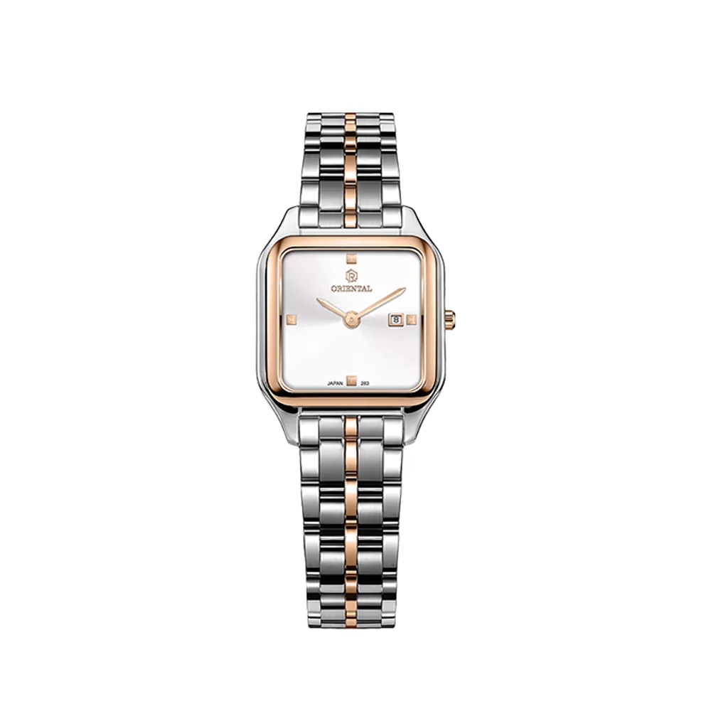 Oriental Watch For Women code O.SH283L-0006 ,a beautiful wrist watch with 283 Reference, is a Classic watch which has a Metallic Strap, gives you an unique style. This watch has a Rosegold Steel case, Rosegold Steel strap and a Silver dial which has created a beautiful color combination.