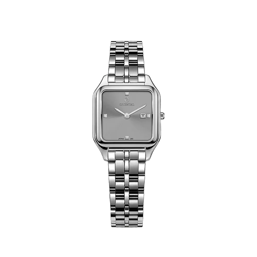 Oriental Watch For Women code O.SH283L-0025 ,a beautiful wrist watch with 283 Reference, is a Classic watch which has a Metallic Strap, gives you an unique style. This watch has a Steel case, Steel strap and a Gray dial which has created a beautiful color combination.