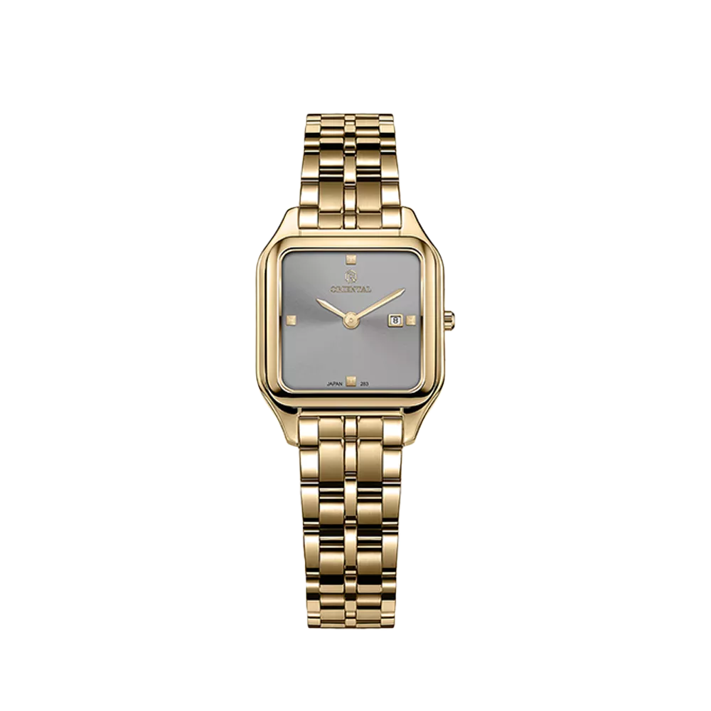 Oriental Watch For Women code O.SH283L-0041 ,a beautiful wrist watch with 283 Reference, is a Classic watch which has a Metallic Strap, gives you an unique style. This watch has a Golden case, Golden strap and a Gray dial which has created a beautiful color combination.