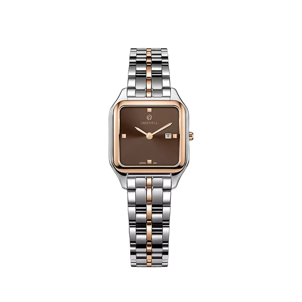 Oriental Watch For Women code O.SH283L-0070 ,a beautiful wrist watch with 283 Reference, is a Classic watch which has a Metallic Strap, gives you an unique style. This watch has a Rosegold Steel case, Rosegold Steel strap and a Coffee dial which has created a beautiful color combination.