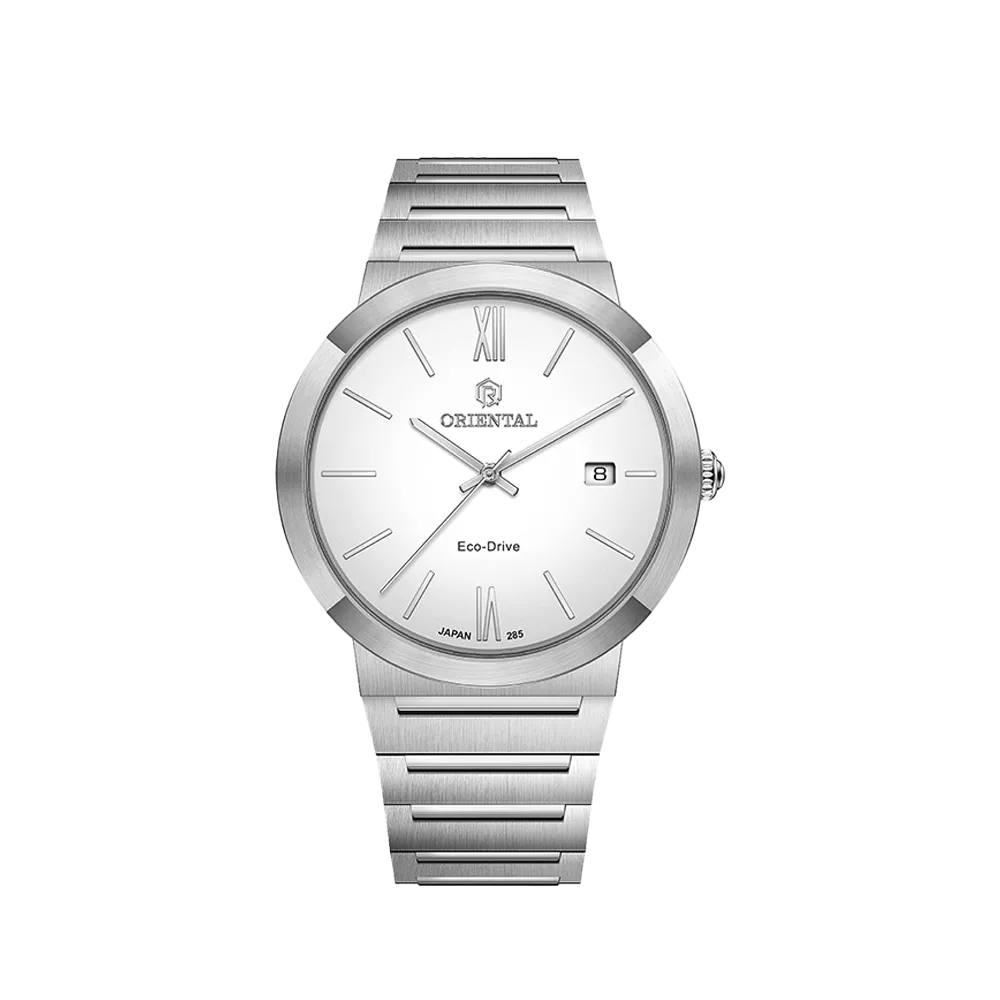 Oriental Watch For Men code O.SH285G-0004 ,a beautiful wrist watch with 285 Reference, is a Classic – Ecodrive watch which has a Metallic Strap, gives you an unique style. This watch has a Steel case, Steel strap and a Silver dial which has created a beautiful color combination.