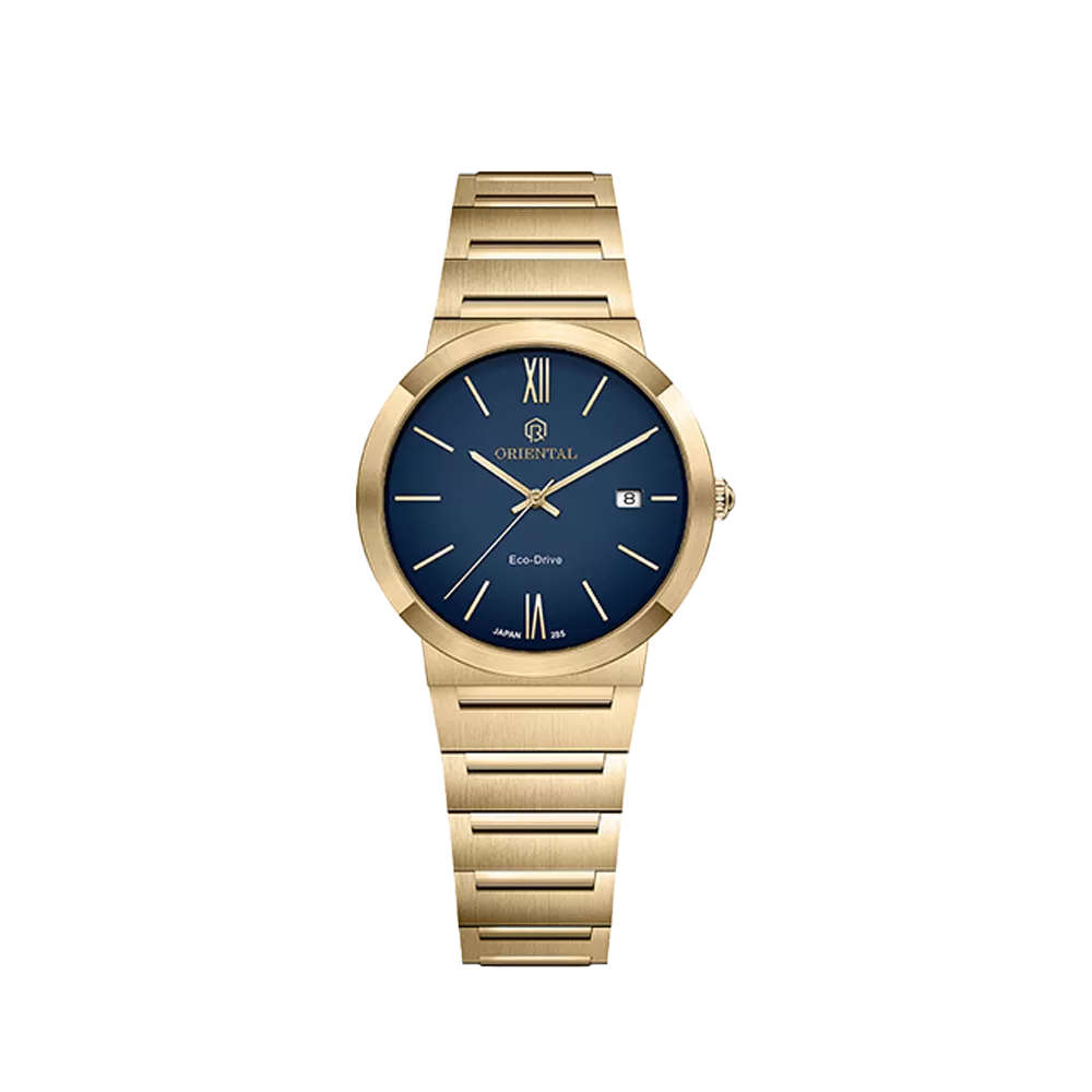 SKU: O.SH285L-0061 Category: Classic - Ecodrive Tags: 285 Reference, Blue Dial, Classic - Ecodrive Watch, Golden Case, Golden Strap, Metallic Strap