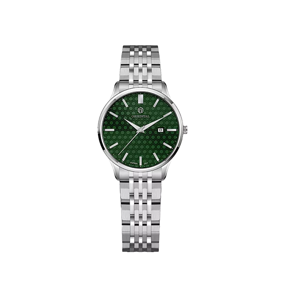 Oriental Watch For Women code O.SH287L-0009 ,a beautiful wrist watch with 287 Reference, is a Classic watch which has a Metallic Strap, gives you an unique style. This watch has a Steel case, Steel strap and a Green dial which has created a beautiful color combination.