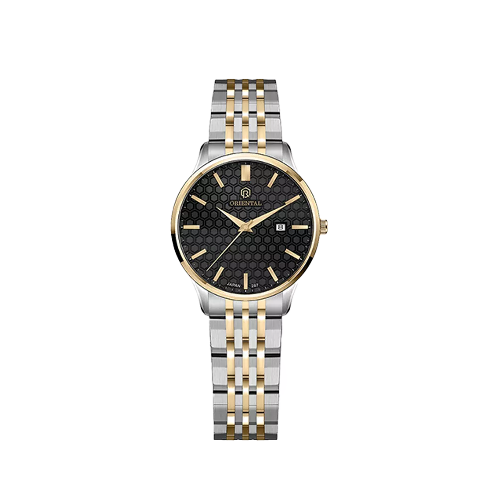 Oriental Watch For Women code O.SH287L-0023 ,a beautiful wrist watch with 287 Reference, is a Classic watch which has a Metallic Strap, gives you an unique style. This watch has a Golden Steel case, Golden Steel strap and a Black dial which has created a beautiful color combination.