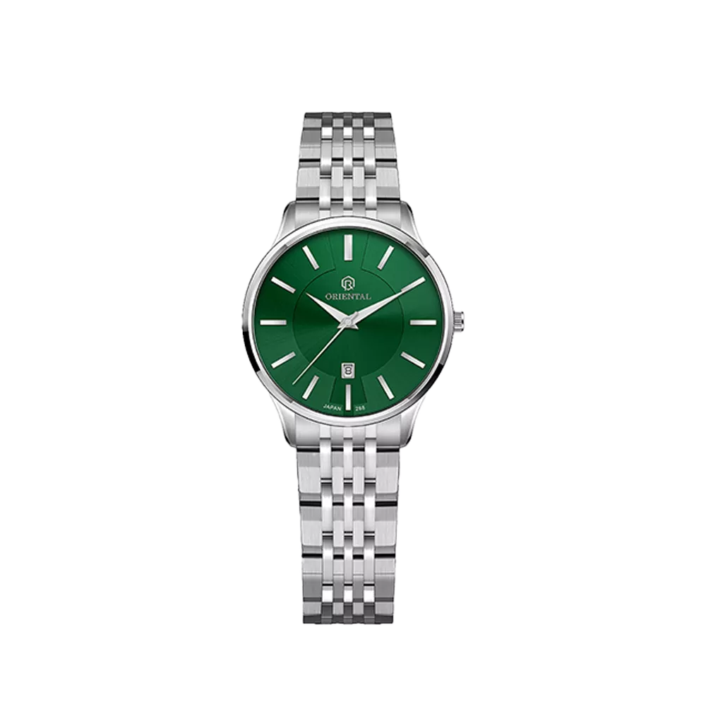 Oriental Watch For Women code O.SH288L-0009 ,a beautiful wrist watch with 288 Reference, is a Classic watch which has a Metallic Strap, gives you an unique style. This watch has a Steel case, Steel strap and a Green dial which has created a beautiful color combination.
