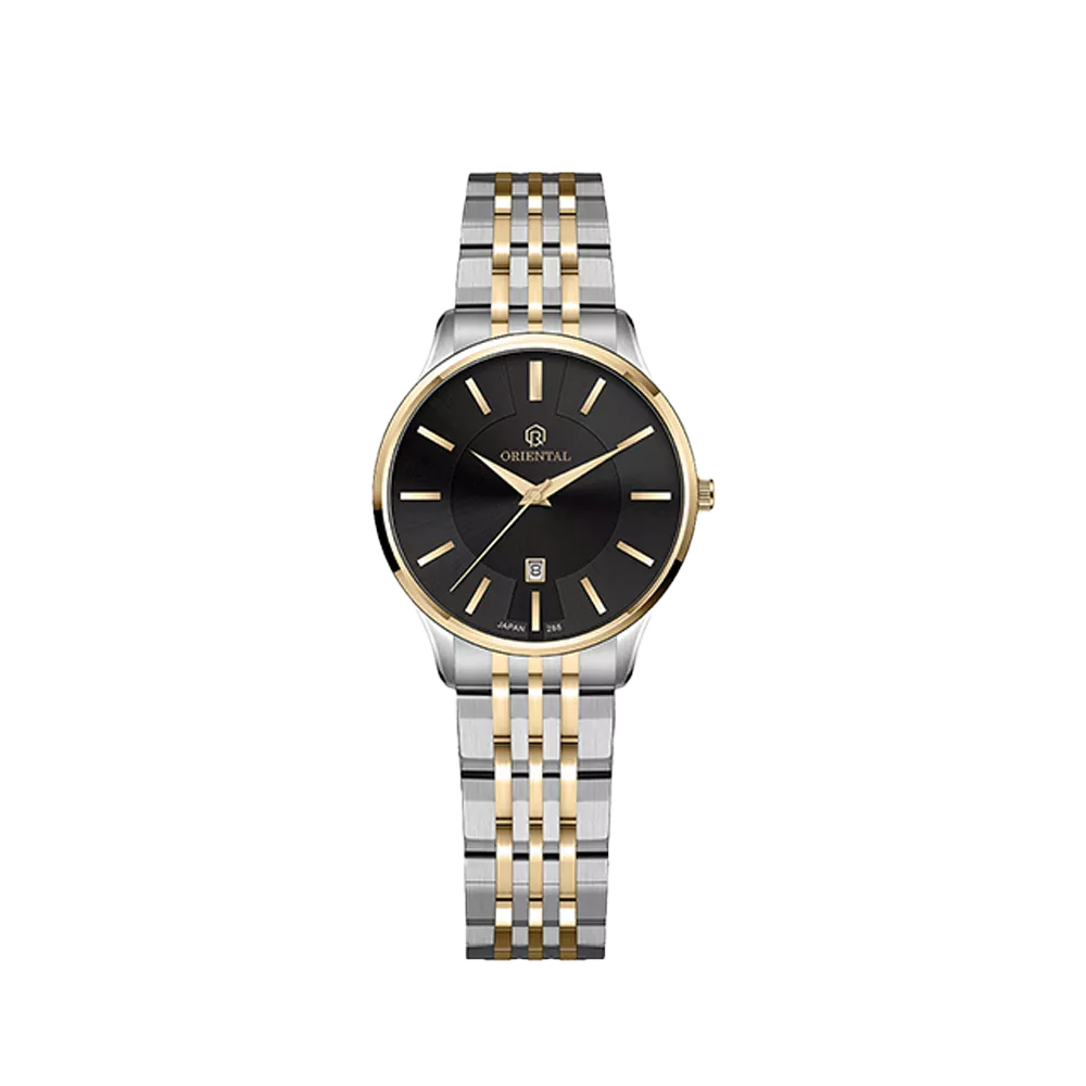 Oriental Watch For Women code O.SH288L-0023 ,a beautiful wrist watch with 288 Reference, is a Classic watch which has a Metallic Strap, gives you an unique style. This watch has a Golden Steel case, Golden Steel strap and a Black dial which has created a beautiful color combination.