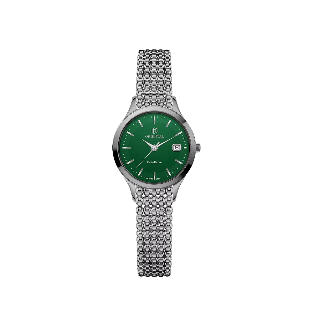 SKU: O.SH291L-0012 Category: Classic - Ecodrive Tags: 291 Reference, Classic - Ecodrive Watch, Green Dial, Metallic Strap, Smoke Case, Smoke Strap