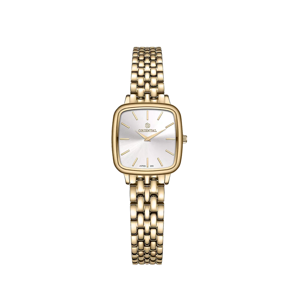 Oriental Watch For Women code O.SH293L-0001 ,a beautiful wrist watch with 293 Reference, is a Classic watch which has a Metallic Strap, gives you an unique style. This watch has a Golden case, Golden strap and a Silver dial which has created a beautiful color combination.