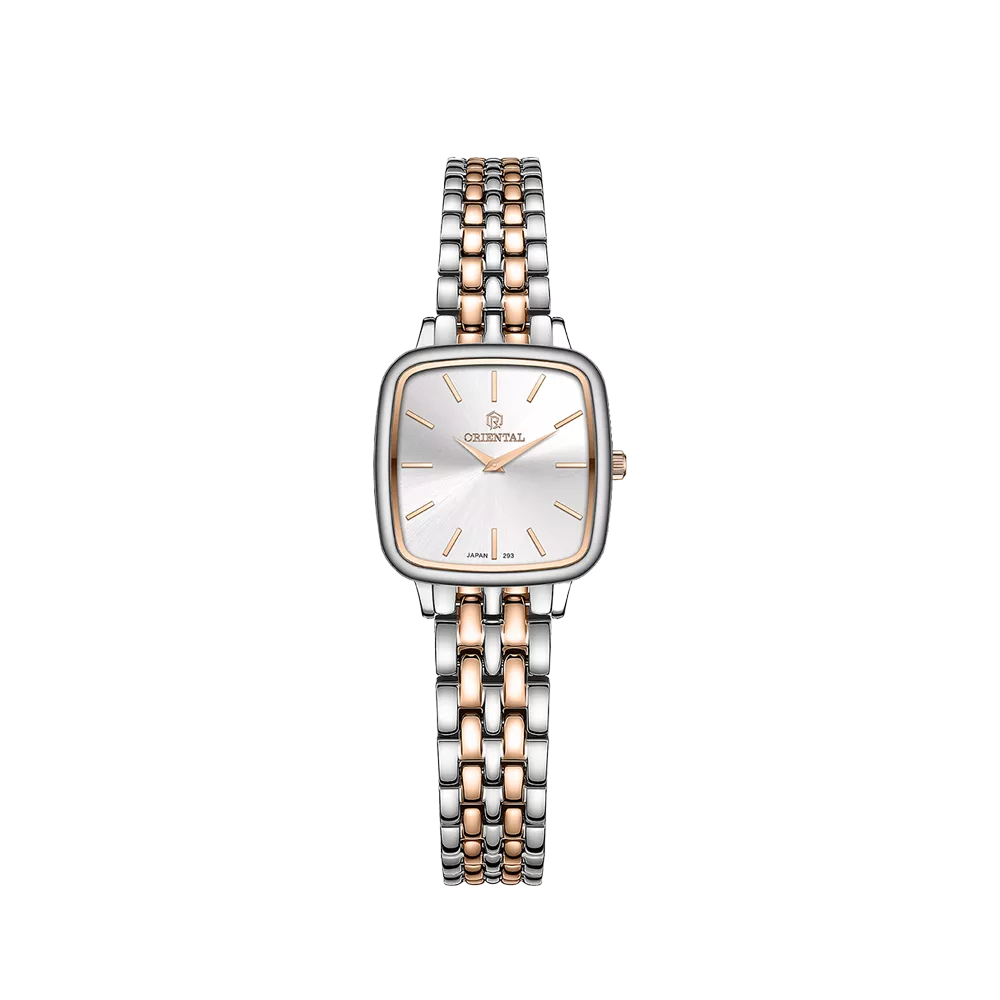 Oriental Watch For Women code O.SH293L-0006 ,a beautiful wrist watch with 293 Reference, is a Classic watch which has a Metallic Strap, gives you an unique style. This watch has a Rosegold Steel case, Rosegold Steel strap and a Silver dial which has created a beautiful color combination.