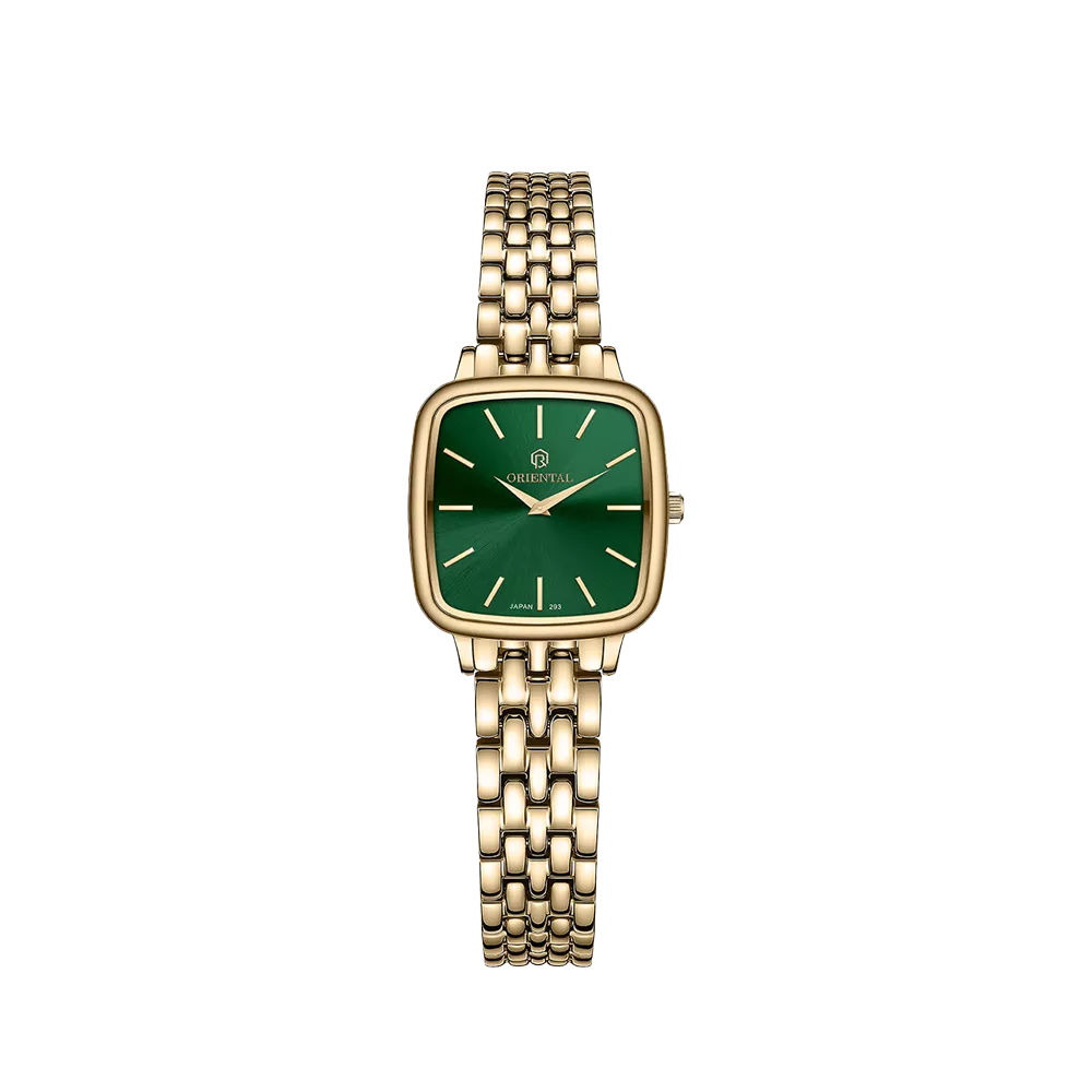 Oriental Watch For Women code O.SH293L-0042 ,a beautiful wrist watch with 293 Reference, is a Classic watch which has a Metallic Strap, gives you an unique style. This watch has a Golden case, Golden strap and a Green dial which has created a beautiful color combination.