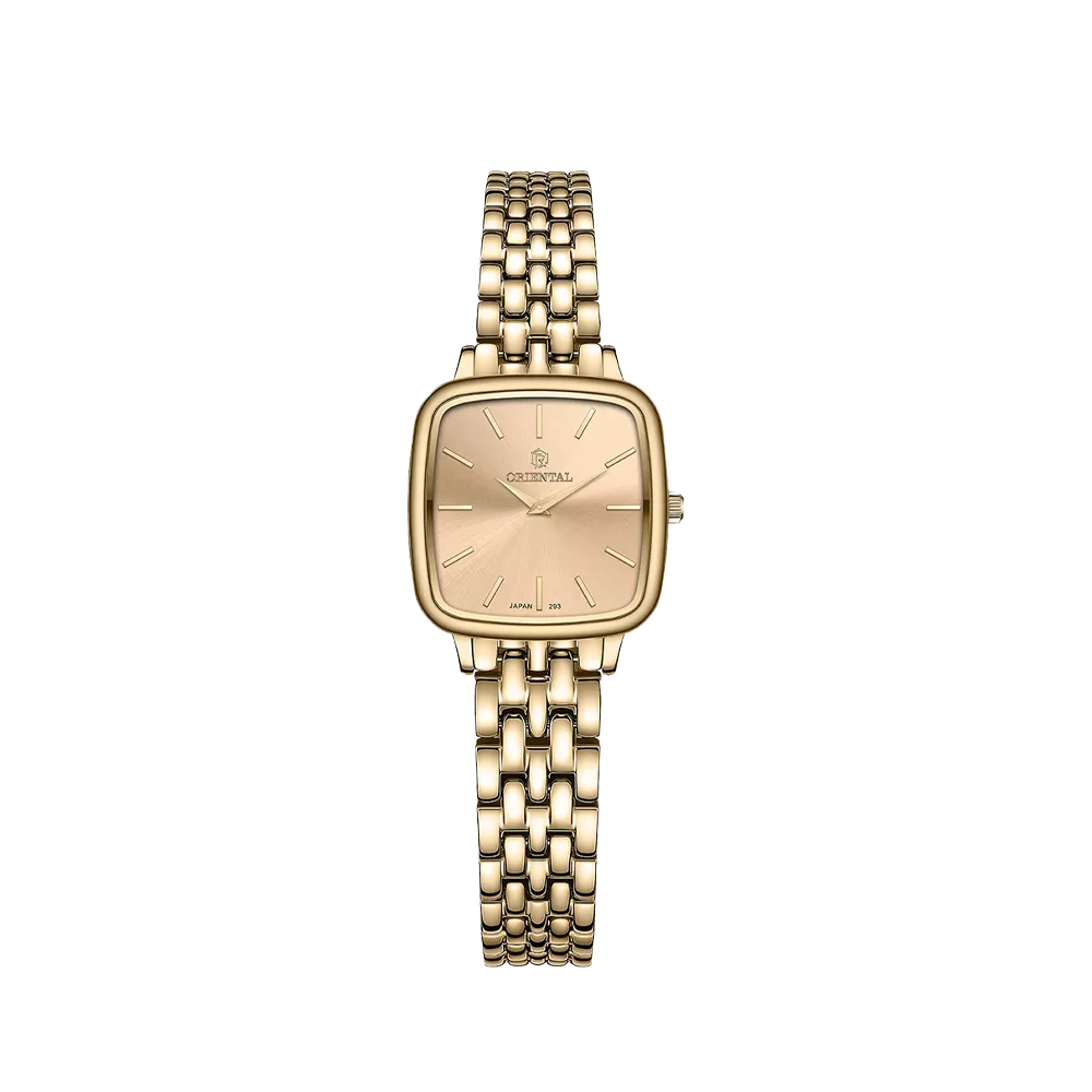 Oriental Watch For Women code O.SH293L-0093 ,a beautiful wrist watch with 293 Reference, is a Classic watch which has a Metallic Strap, gives you an unique style. This watch has a Golden case, Golden strap and a Champagne dial which has created a beautiful color combination.