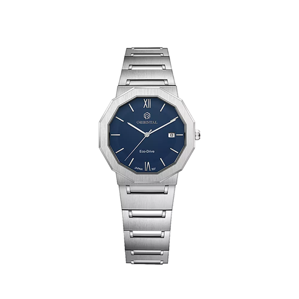 Oriental Watch For Women code O.SH307L-0010 ,a beautiful wrist watch with 307 Reference, is a Classic – Ecodrive watch which has a Metallic Strap, gives you an unique style. This watch has a Steel case, Steel strap and a Blue dial which has created a beautiful color combination.