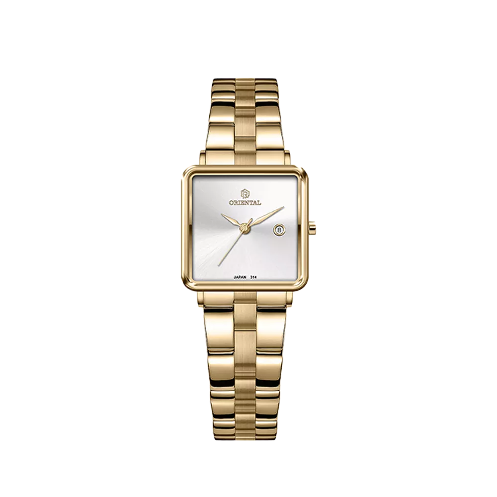 Oriental Watch For Women code O.SH314L-0001 ,a beautiful wrist watch with 314 Reference, is a Classic watch which has a Metallic Strap, gives you an unique style. This watch has a Golden case, Golden strap and a Silver dial which has created a beautiful color combination.