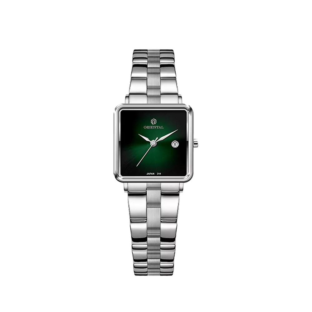 Oriental Watch For Women code O.SH314L-0009 ,a beautiful wrist watch with 314 Reference, is a Classic watch which has a Metallic Strap, gives you an unique style. This watch has a Steel case, Steel strap and a Green dial which has created a beautiful color combination.
