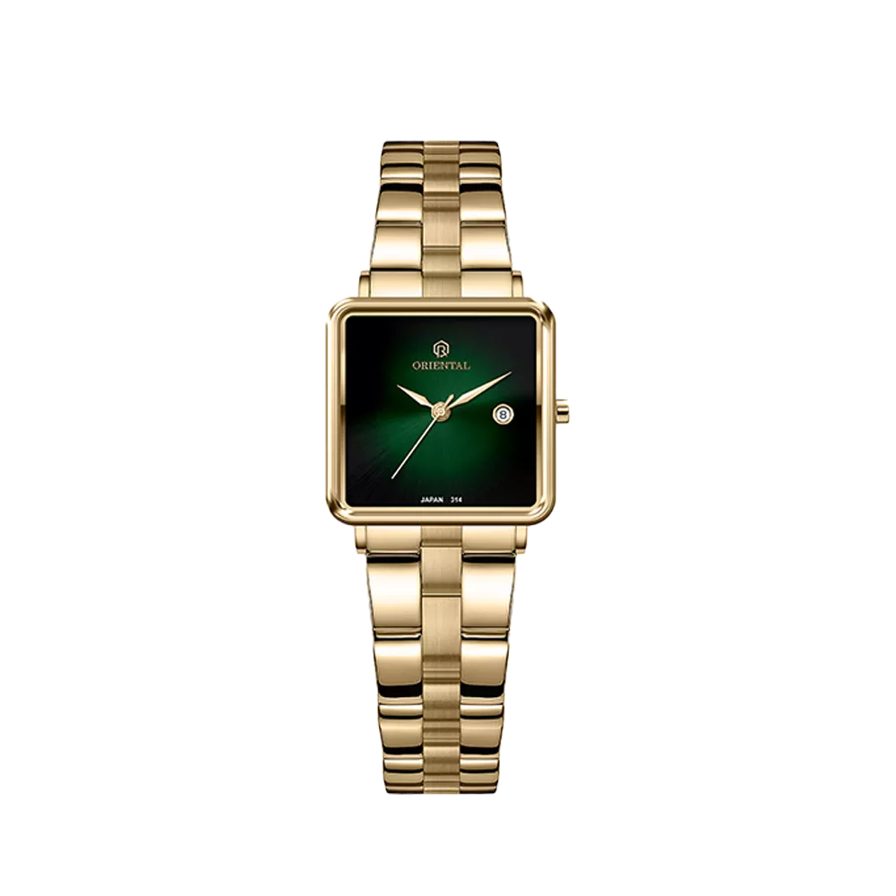 Oriental Watch For Women code O.SH314L-0042 ,a beautiful wrist watch with 314 Reference, is a Classic watch which has a Metallic Strap, gives you an unique style. This watch has a Golden case, Golden strap and a Green dial which has created a beautiful color combination.